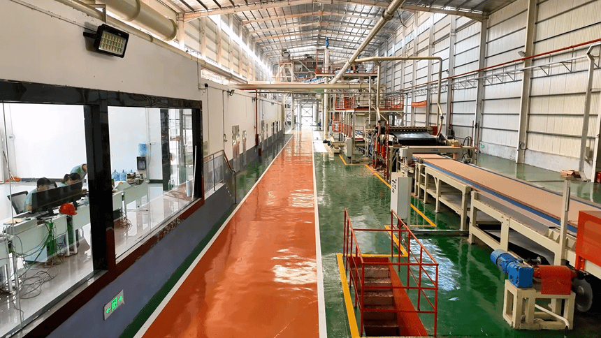 走进项目出产车间,最引人夺目的便是那条德邦“迪芬巴赫”相连平压出产线——举动目前宇宙优秀的板材出产筑造,它不只是项目高效运转的重点,更是绿色出产的“主力军”。